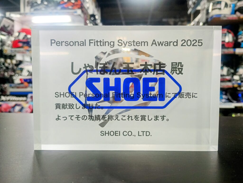 このたび しゃぼん玉本店がSHOEIヘルメット様より表彰 していただきました