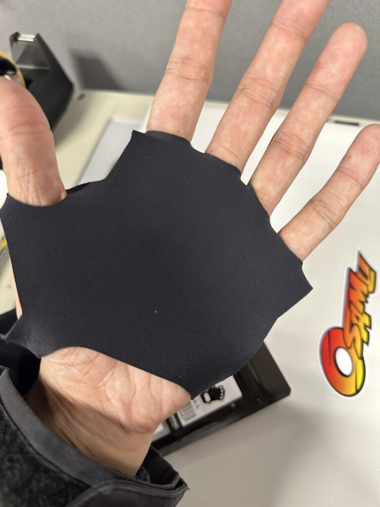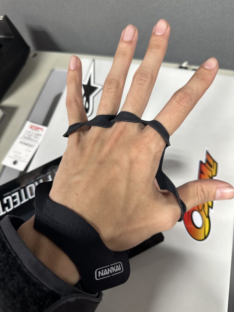 つけた感じはこんな感じ↓ひら全体を覆うような感じです。少し厚みがあるので今使ってるグローブが少し大きいかもという人にもおすすめですよー