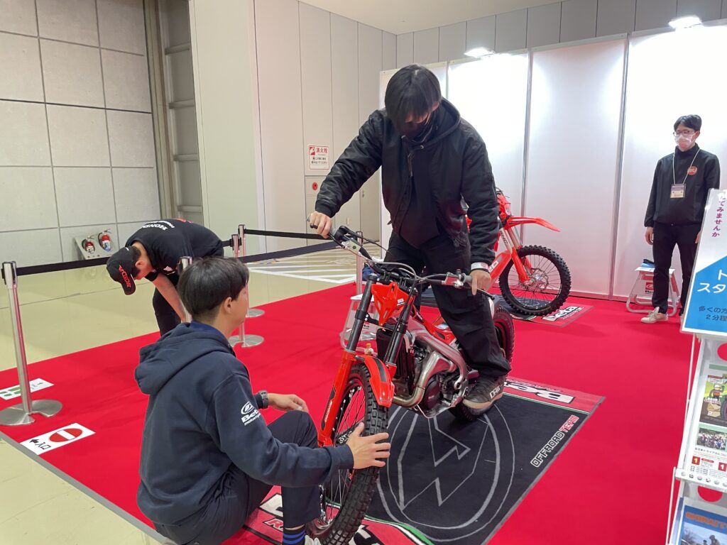 展示を見るほかにもMFJブースではトライアル車輛でスタンディングの体験などやっていました!