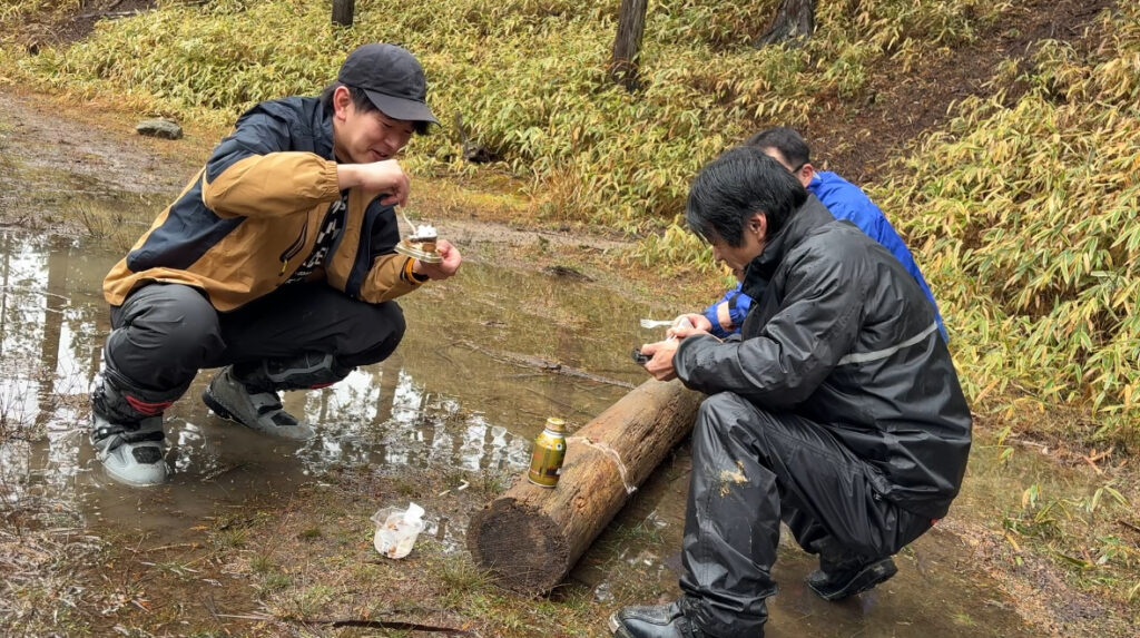 雨なので滑る滑る。(でも楽しいんですよね)