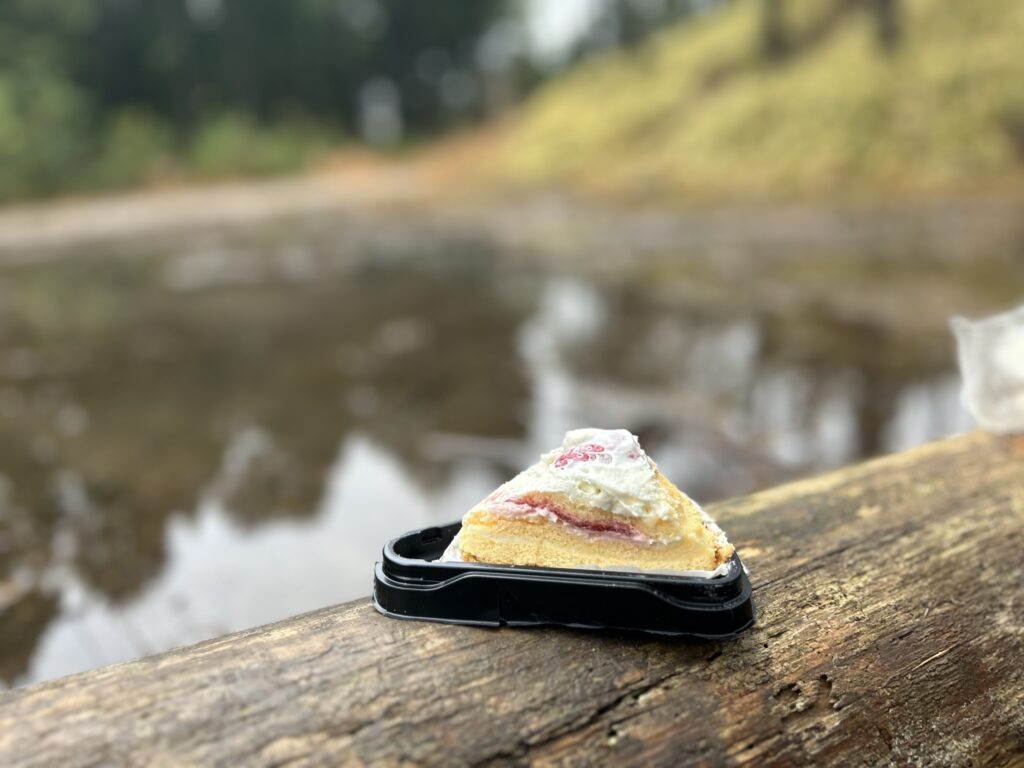 「クリスマス・イブに林道でケーキを食べる」