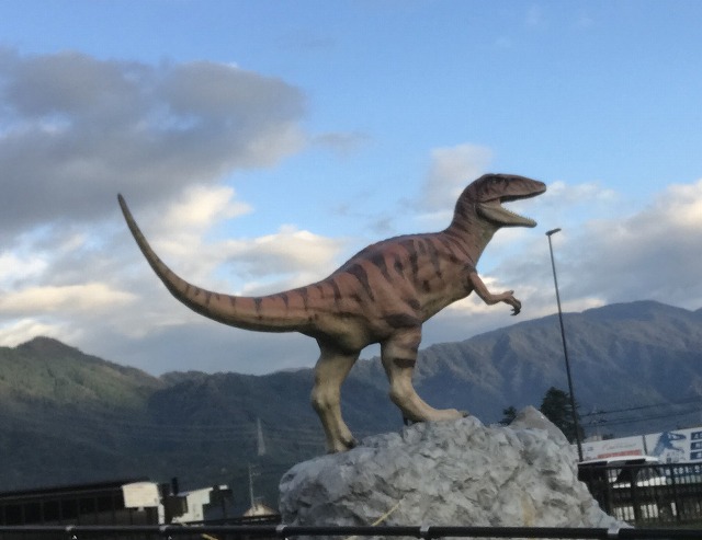 こんなような恐竜のオブジェがそこら中に現れるので↓