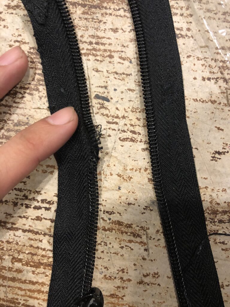 ファスナー延長をしてファスナーは閉まるんでけど上のバックルが閉まらないという方は内側も一緒に加工しましょう!!