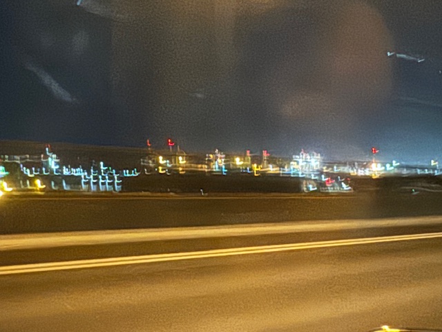 道中の工業地帯の明かりもきれい