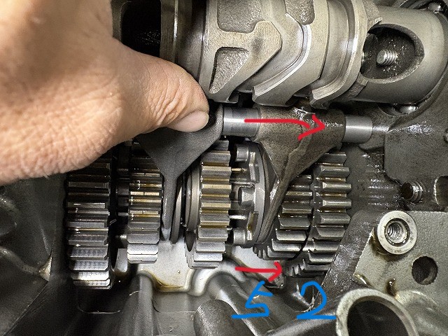 5速と2速のドッグ部がしっかりかみ合っている写真↑