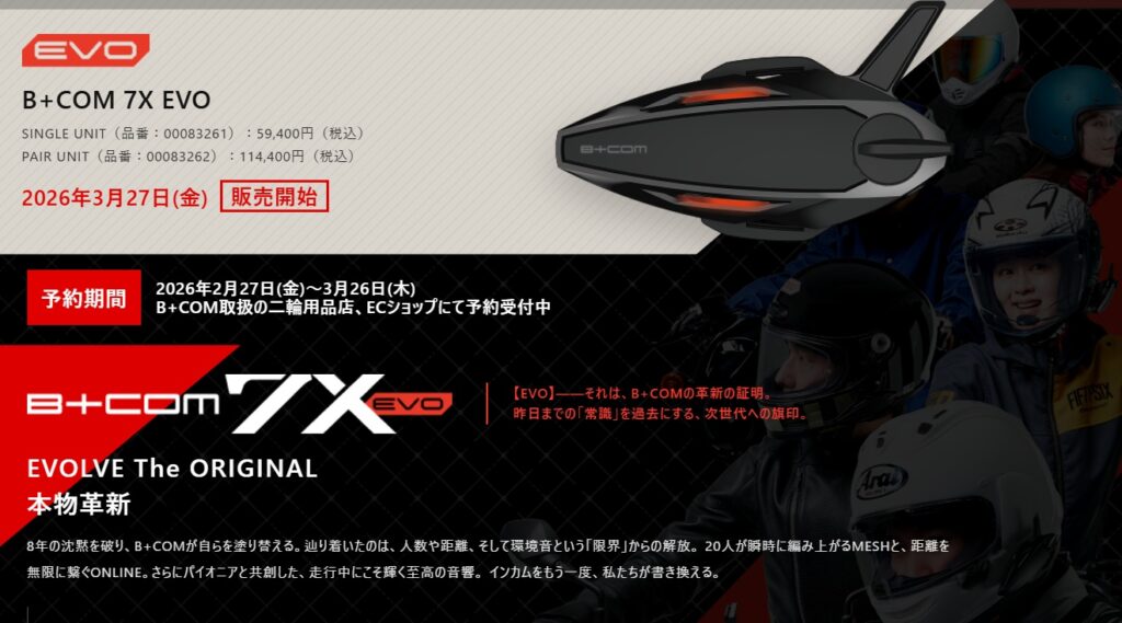 新型B+COM 「B+COM 7X EVO」 3月27日(金)発売開始。予約受付中