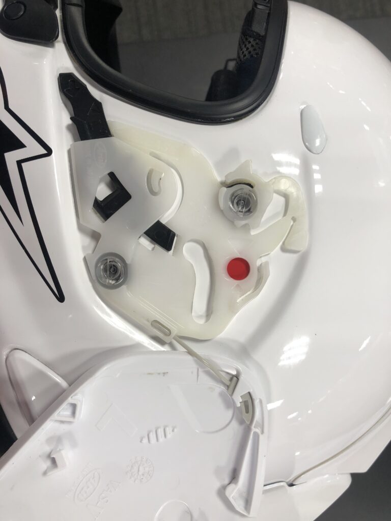 実はインカムの取り付けとかをするヘルメットはこっそりシールドの動きを確認させていただいています(笑)