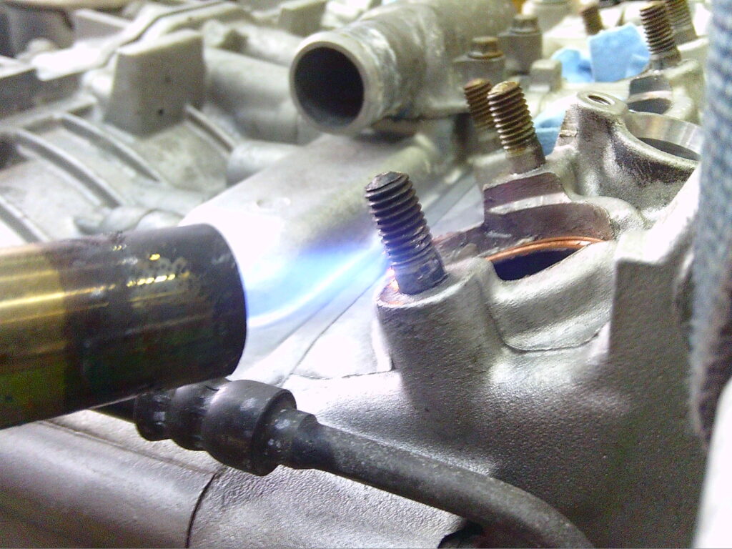 もちろん固着して簡単には外れないのでバーナーであぶっての取り外し。