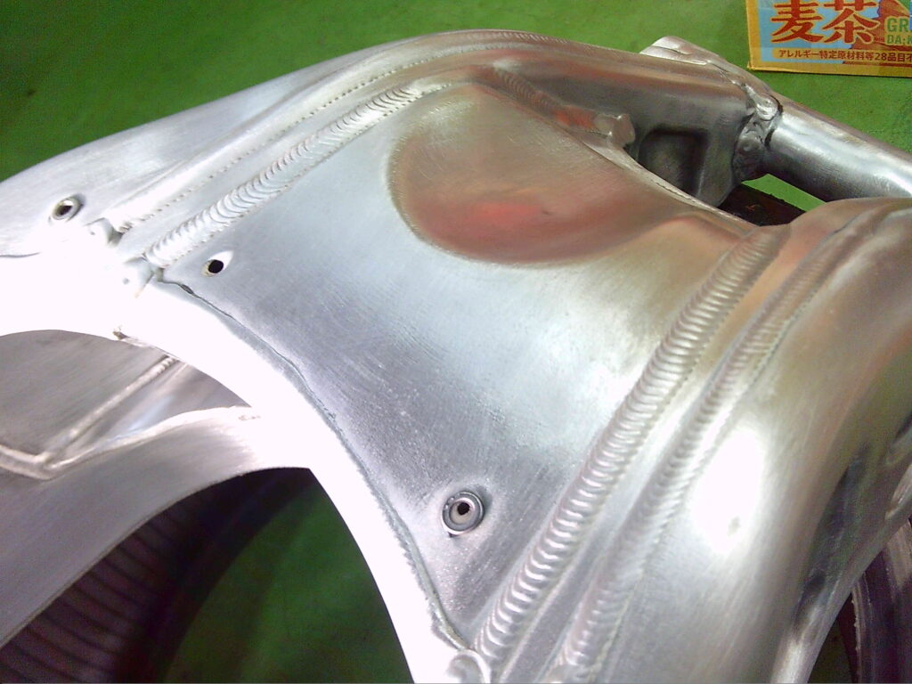 ブラックアルマイトを落としてからのバフ掛け準備。