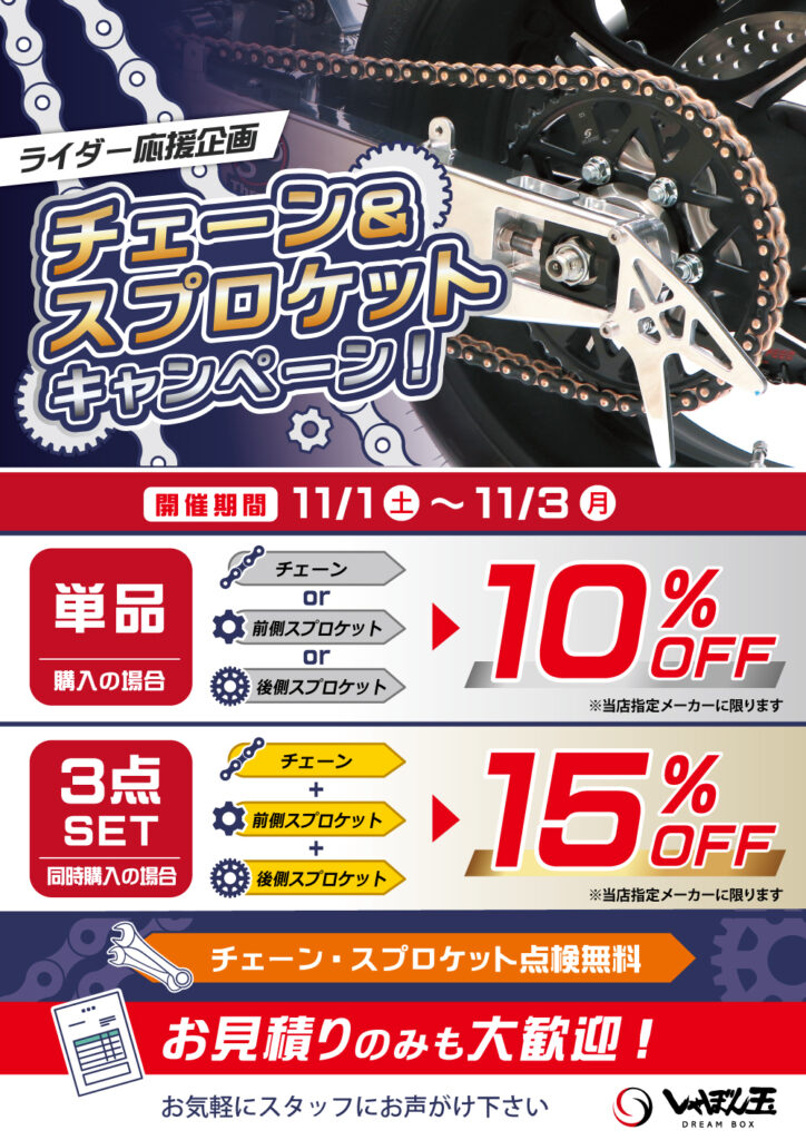そして今週末 11月1日からチェーン&スプロケットキャンペーンが始まります。